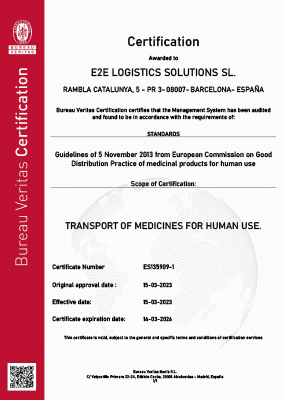 e2e, Freight Forwarder specialized in shipments of Pharmaceutical/Veterinary products in compliance with GDP regulations and guaranteeing the entire GDP quality process, integrity, security and traceability, with specialized personnel and our management software.