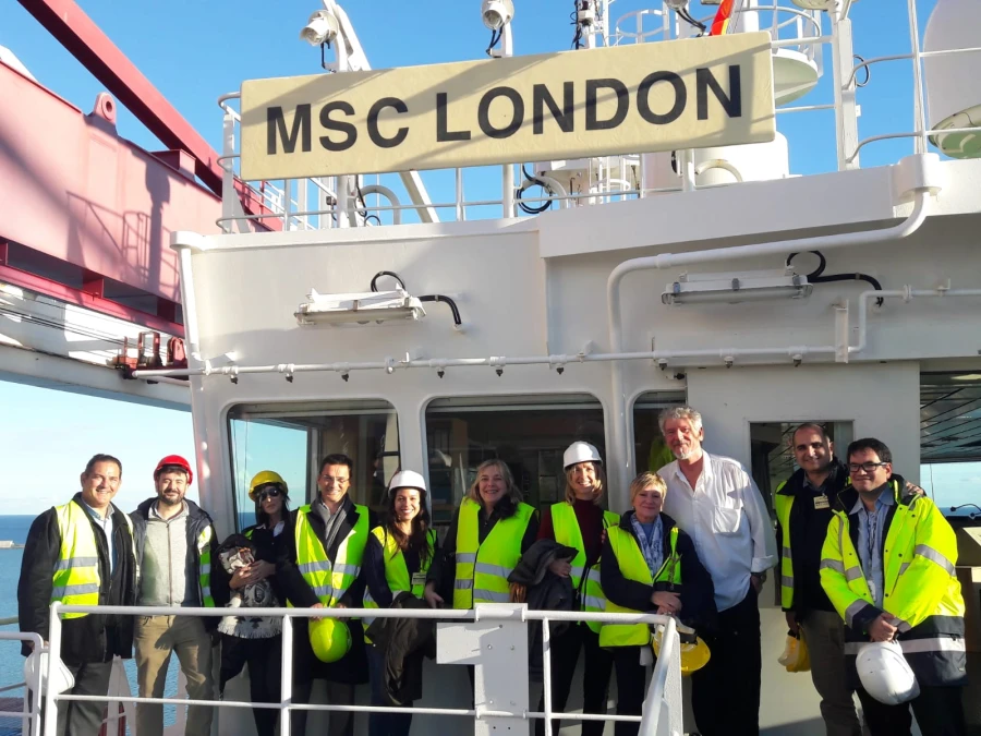 Profesionales del equipo de e2e Logistics, acompañados por algunos clientes de la compañía, protagonizaron a finales de noviembre una visita al buque portacontenedores “MSC London”, invitados por la naviera MSC, durante una operativa de este en el Puerto de Barcelona.